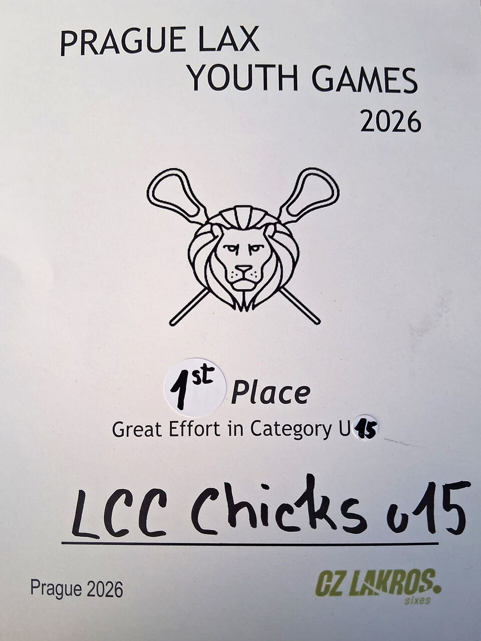 Hráčky LCC Chicks ovládly kategorii U15 na mezinárodním turnaji Prague Lax Youth Games (PLYG). Odehrál se o víkendu 24. a 25. 1. 2026 v nafukovací hale areálu Na Šancích. Tradiční zimní akce nabídla souboje ve třech věkových kategoriích – U10, U12 a U15 – a hrálo se v rychlé a divácky atraktivní disciplíně sixes.